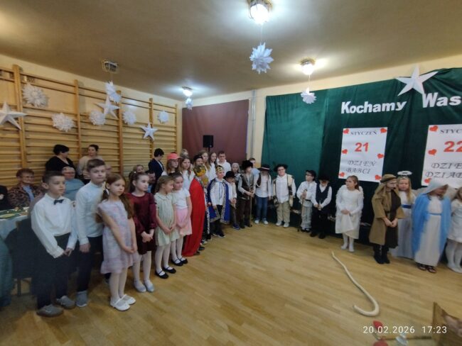 Dziś, 20.02.2026 roku, w naszej szkole odbyła się wyjątkowa uroczystość z okazji Dnia Babci i Dziadka Dziadkowie licznie przybyli, aby podziwiać występy swoich wnucząt i wspólnie spędzić ten wyjątkowy czas. Podczas uroczystości dzieci zaprezentowały bogaty program artystyczny – były wzruszające wiersze, radosne piosenki, teatr cienia, a także układy taneczne i krótkie scenki…