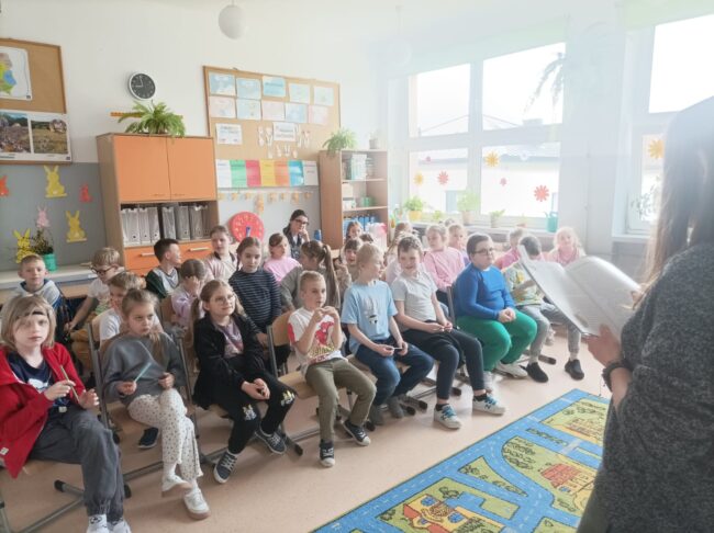 Dnia 16.04.2026 r. naszych najmłodszych uczniów odwiedziła Pani bibliotekarka z Gminnej Biblioteki w Racławicach. Tematem spotkania były różne aspekty przyjaźni. Uczniowie chętnie brali udział w warsztatach bibliotecznych.