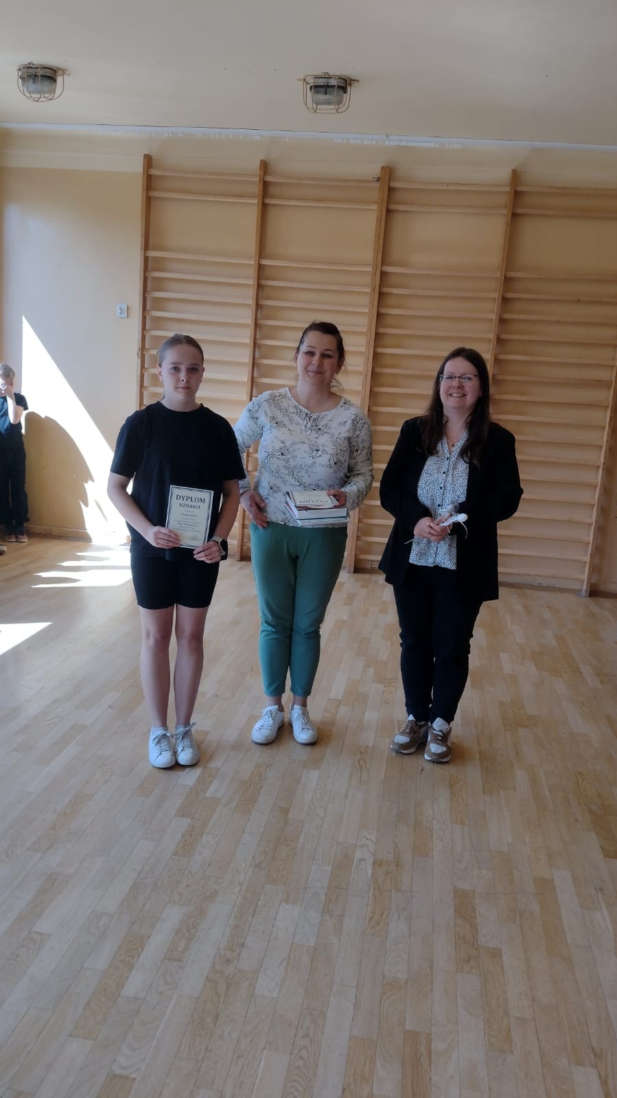 W dniu 14 kwietnia 2025 roku Pani Dyrektor Anna Tracz wręczyła uczniom naszej szkoły dyplomy i nagrody zdobyte przez nich w Ogólnopolskim Konkursie „Orzeł Ortograficzny”. Julia K. z kl. 8 i Pola P. z kl. 5 zajęły odpowiednio 9 i 12 miejsce, stając się laureatkami owego konkursu i uzyskując dyplomy laureata oraz nagrody książkowe. Pozostali uczestnicy otrzymali dyplomy uznania. Wszystkim, którzy wzięli udział w konkursie serdecznie gratulujemy!