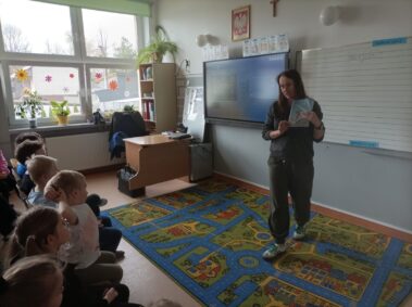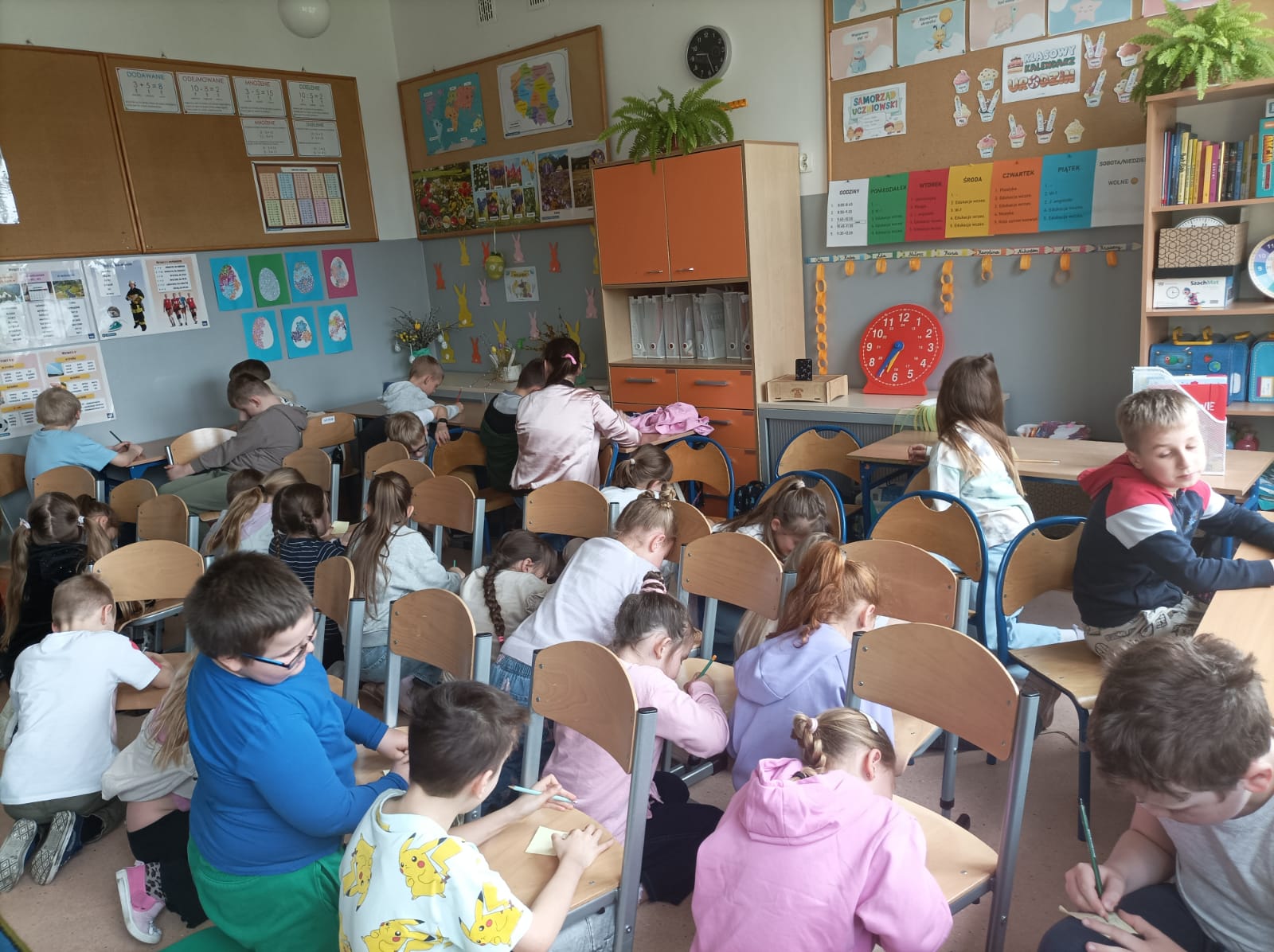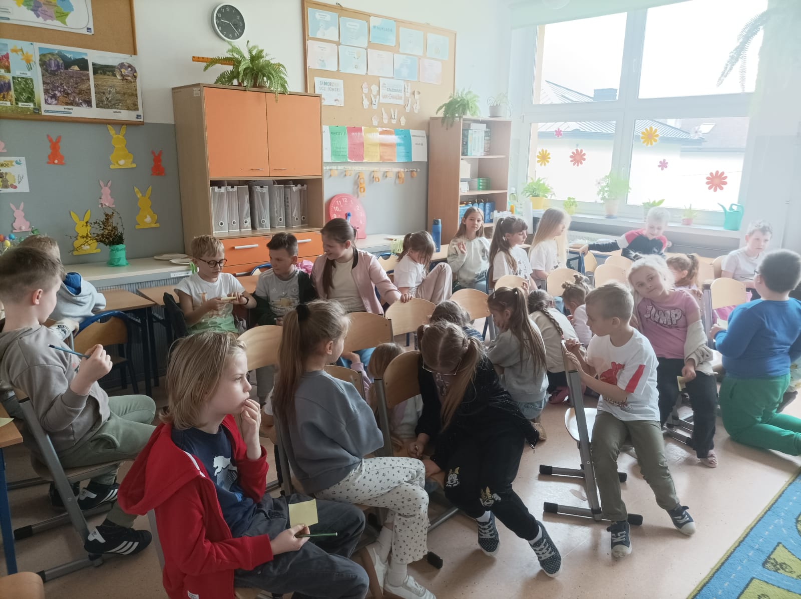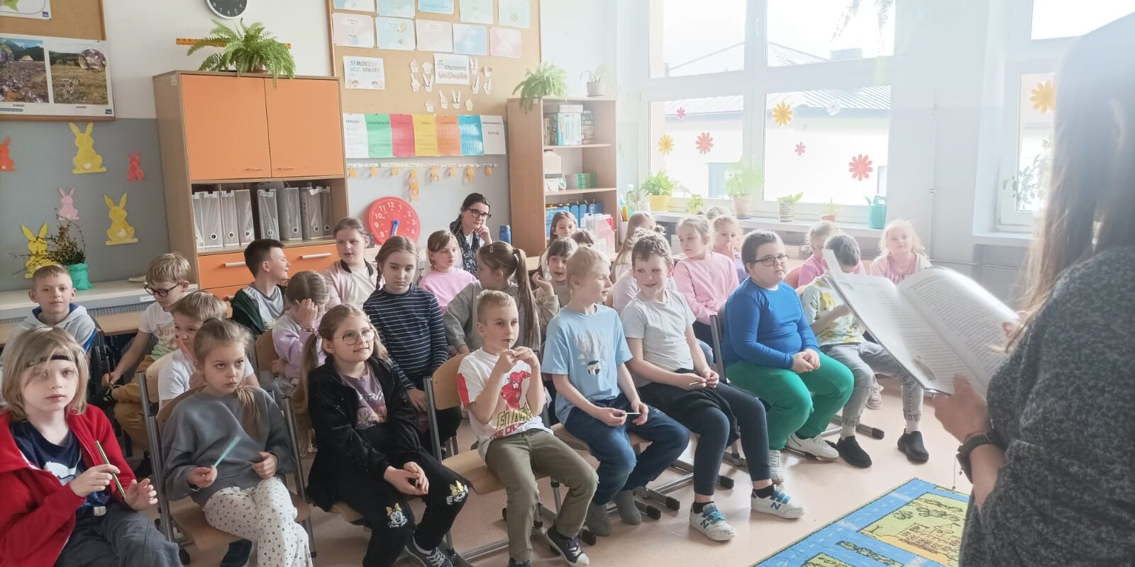 kwi162026 Dnia 16.04.2026 r. naszych najmłodszych uczniów odwiedziła Pani bibliotekarka z Gminnej Biblioteki w Racławicach. Tematem spotkania były różne aspekty przyjaźni. Uczniowie chętnie brali udział w warsztatach bibliotecznych.