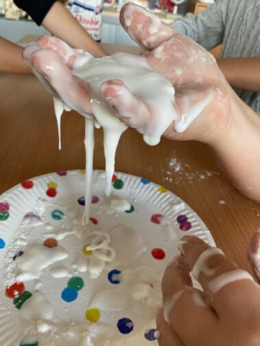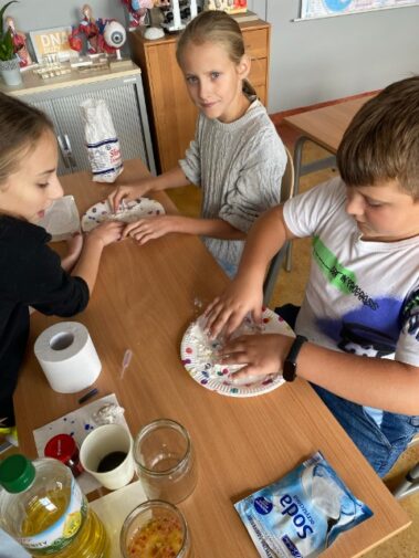 Za nami pierwszy miesiąc nauki i pierwszy miesiąc zajęć rozwijających kreatywność uczniów.🌍👀☘️📚📒🔍Na zajęciach uczniowie wykonywali różne, kolorowe doświadczenia. Sprawdzaliśmy co to jest napięcie powierzchniowe, badaliśmy właściwości wody czy świetnie się bawiliśmy, wykonując ciecz nienewtonowską. Poniżej kilka zdjęć z zajęć