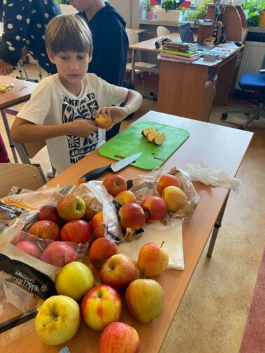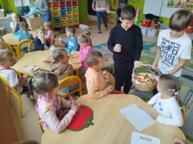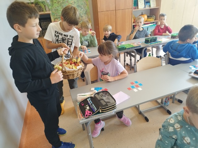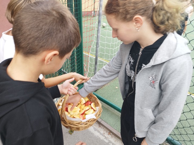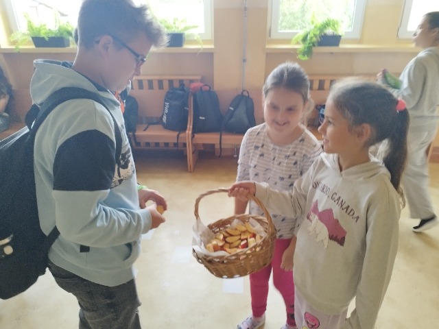 Dnia 27 września 2024r. uczniowie oraz przedszkolaki obchodzili Światowy Dzień Jabłka. Wszyscy w tym dniu zajadali się zdrowymi, soczystymi jabłuszkami. Była to akcja prozdrowotna, której celem było zachęcanie uczniów do spożywania jabłek, a także spopularyzowanie zalet tego owocu