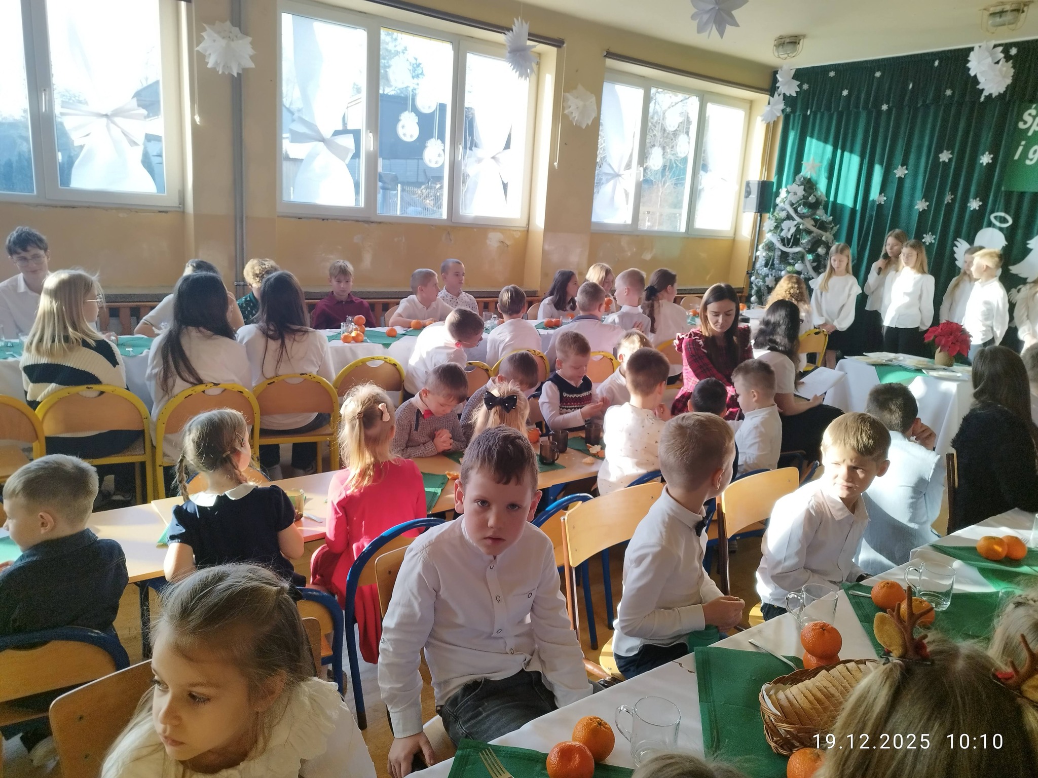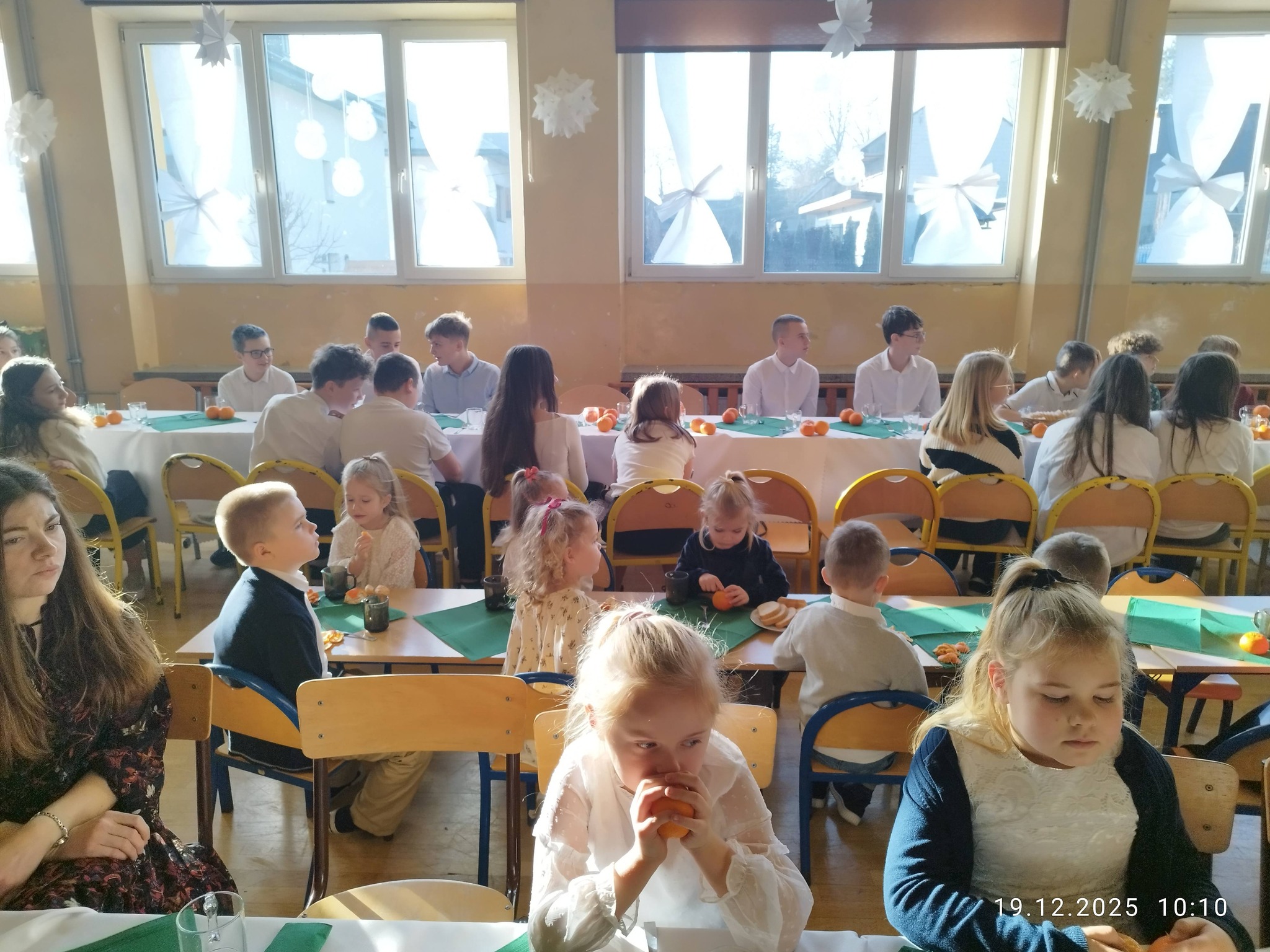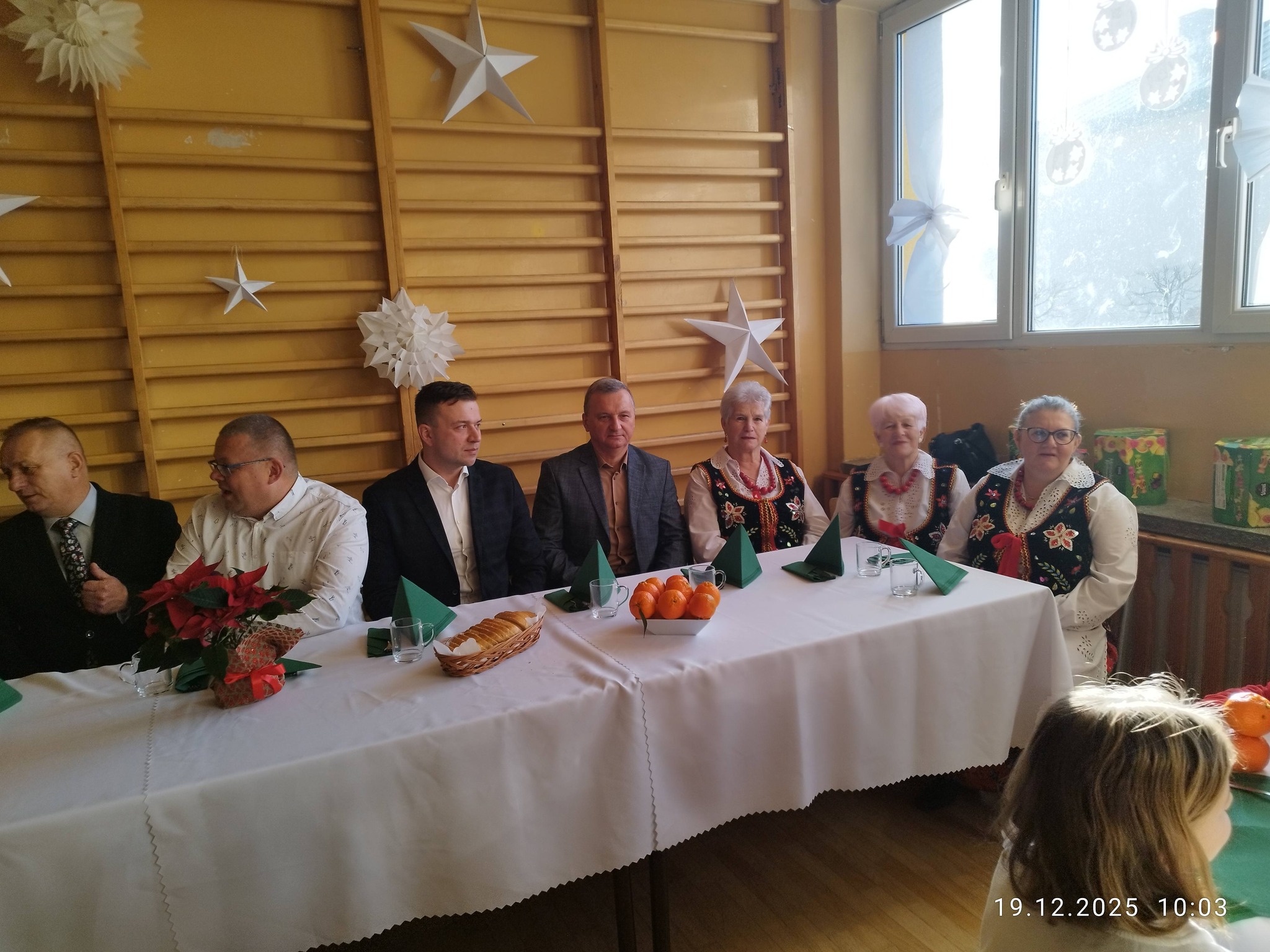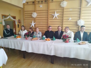 19 grudnia 2025 roku w naszej szkole odbyła się wyjątkowa szkolna wigilia. Był to pełen ciepła i radości czas, który zgromadził całą społeczność szkolną. W uroczystości wzięły udział przedszkolaki, uczniowie, nauczyciele, pracownicy szkoły oraz zaproszeni goście: Proboszcz Jacek Miodek, Radni Pan Jacek Mitka oraz Pan Przemysław Gorajczyk, Sołtys – Pan Józef Woźniak, przedstawiciel OSP Czubrowice – Pan Piotr Hrabia , założyciel zespołu Mazureczek – Pan Mariusz Mazur , przewodnicząca Szkolnej Rady Rodziców – Pani Justyna Sądecka, przedstawicielki KGW Czubrowice oraz Panie emerytki.