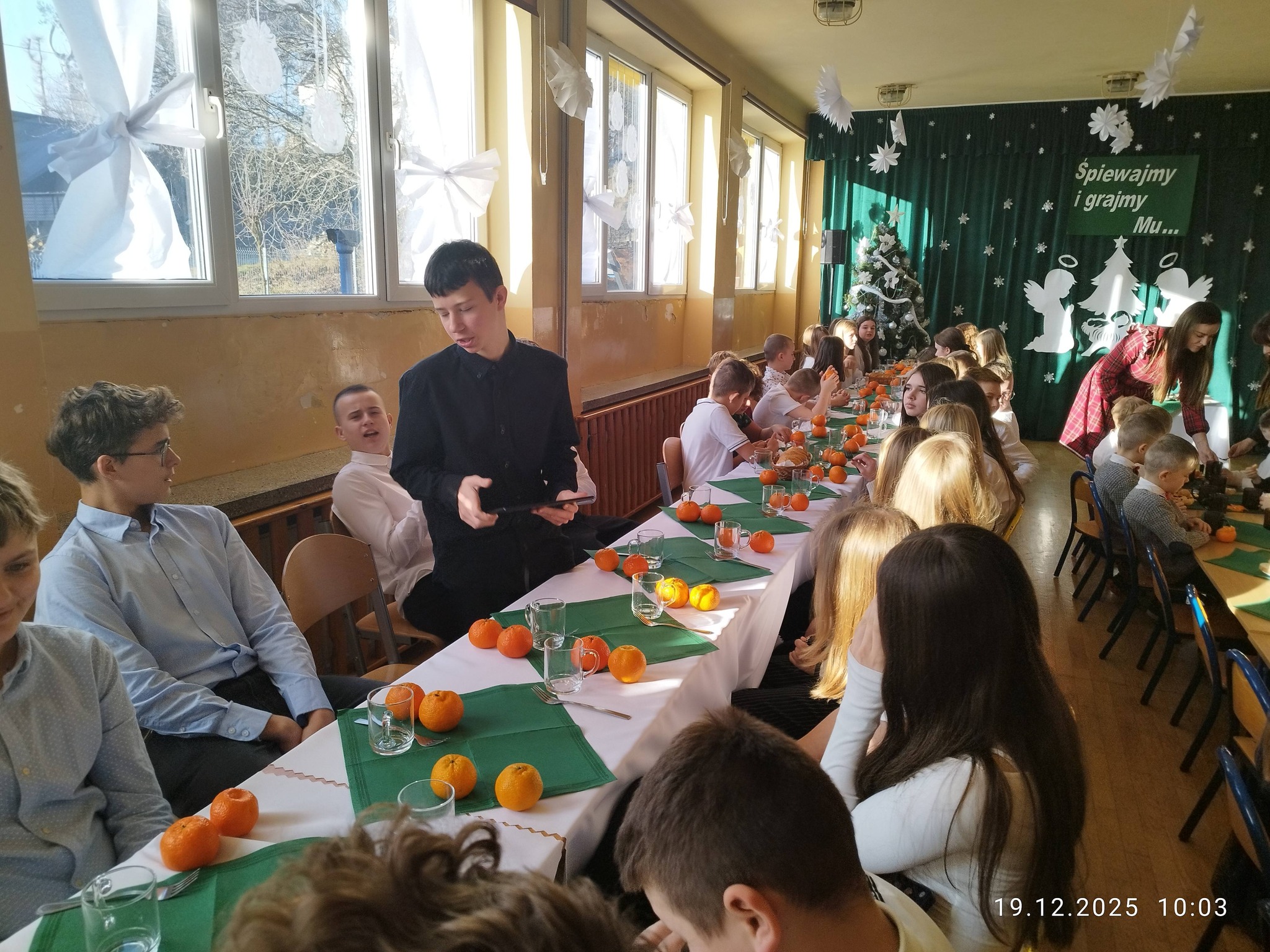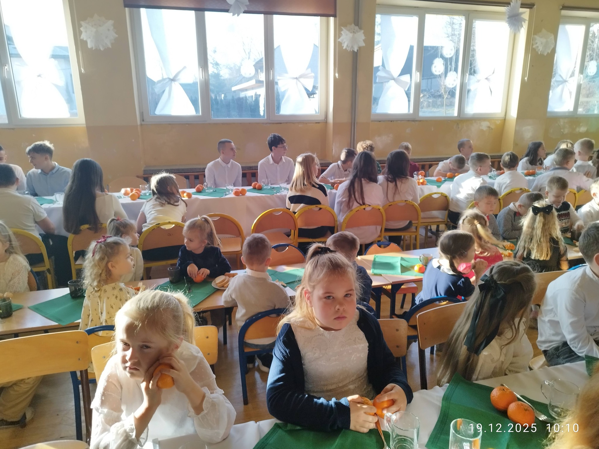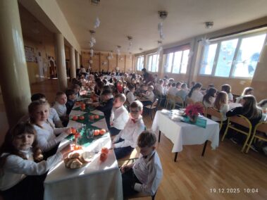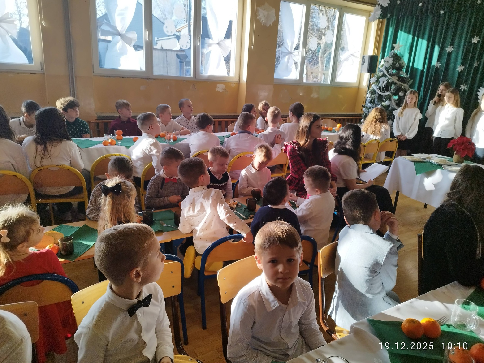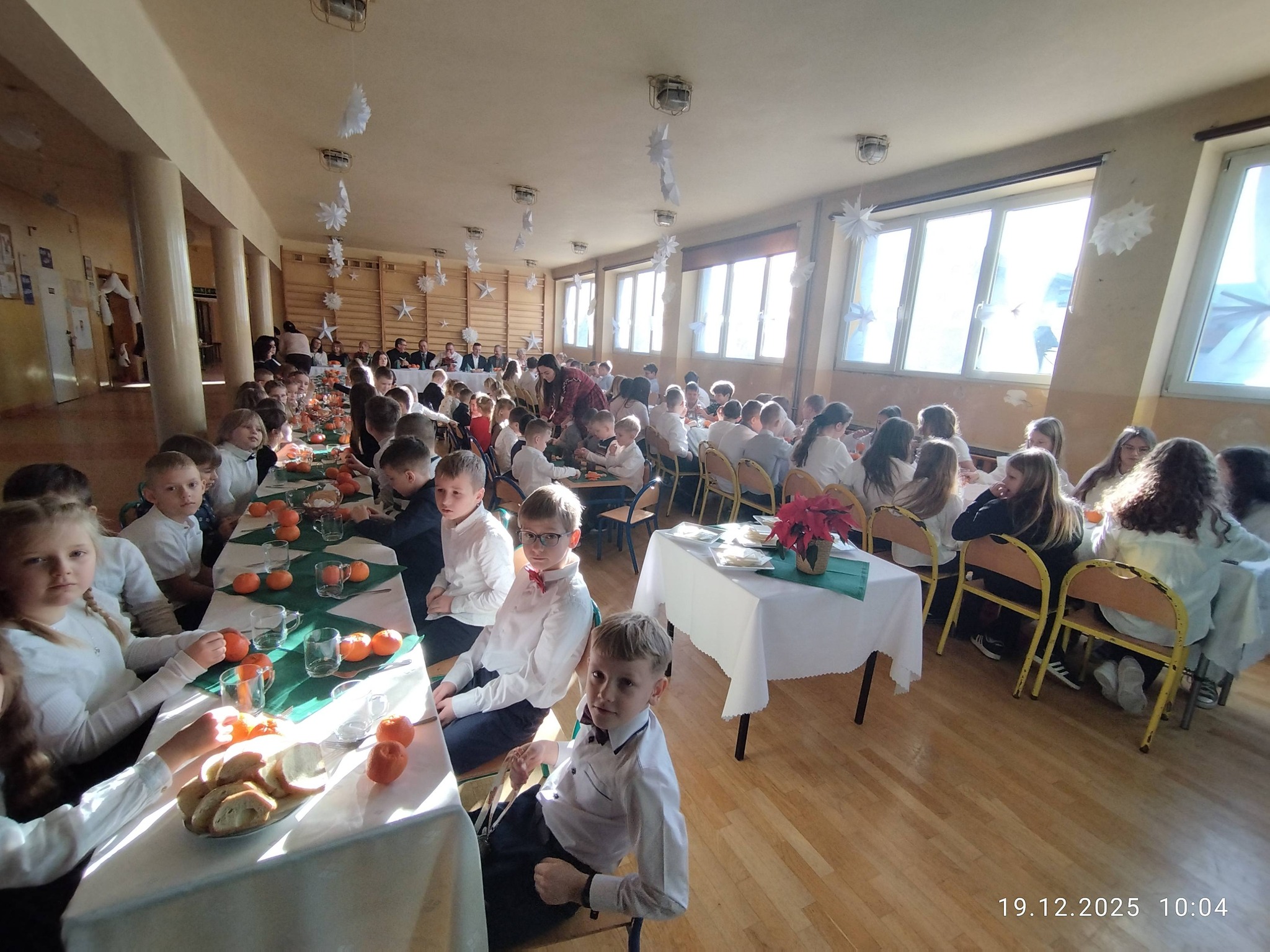 19 grudnia 2025 roku w naszej szkole odbyła się wyjątkowa szkolna wigilia. Był to pełen ciepła i radości czas, który zgromadził całą społeczność szkolną. W uroczystości wzięły udział przedszkolaki, uczniowie, nauczyciele, pracownicy szkoły oraz zaproszeni goście: Proboszcz Jacek Miodek, Radni Pan Jacek Mitka oraz Pan Przemysław Gorajczyk, Sołtys – Pan Józef Woźniak, przedstawiciel OSP Czubrowice – Pan Piotr Hrabia , założyciel zespołu Mazureczek – Pan Mariusz Mazur , przewodnicząca Szkolnej Rady Rodziców – Pani Justyna Sądecka, przedstawicielki KGW Czubrowice oraz Panie emerytki.