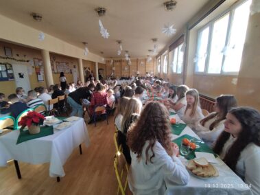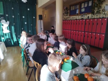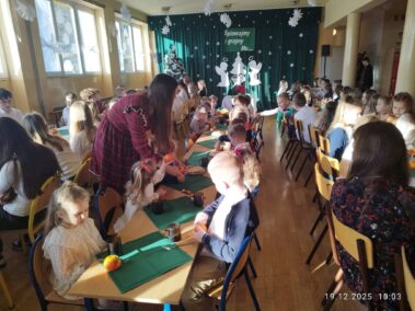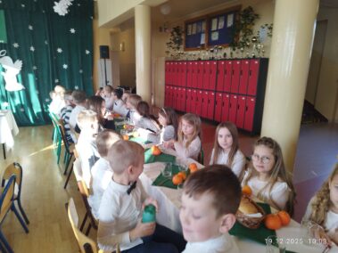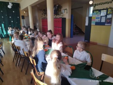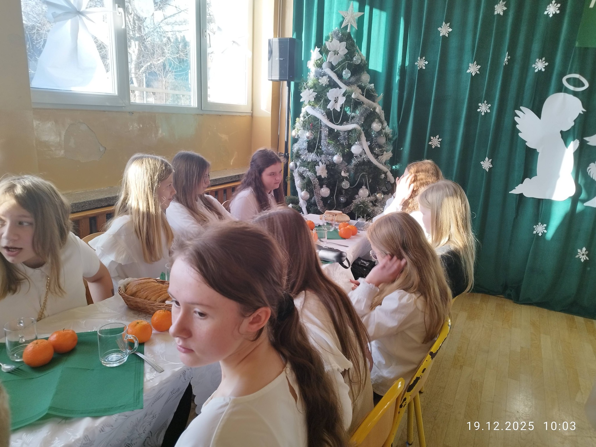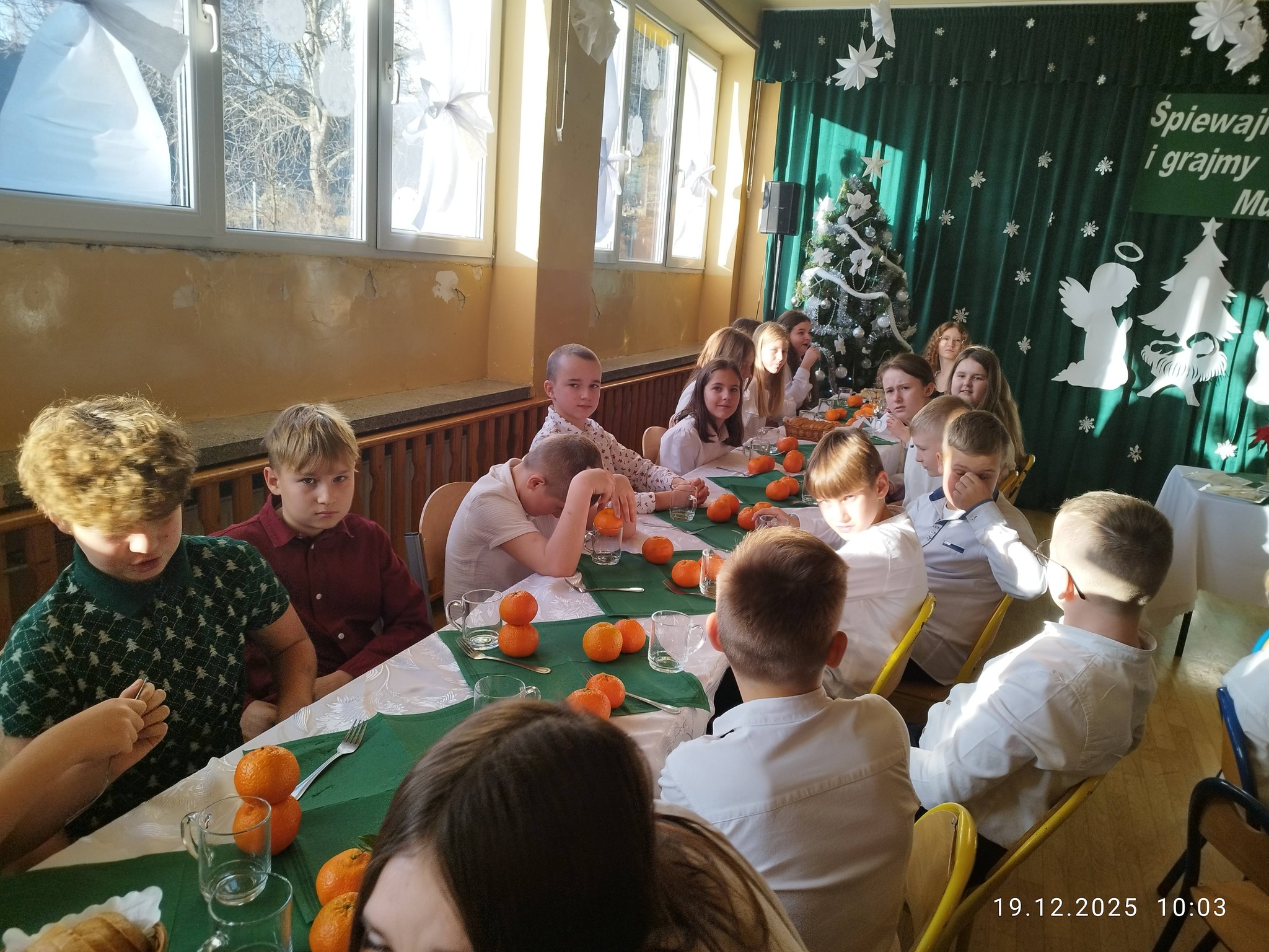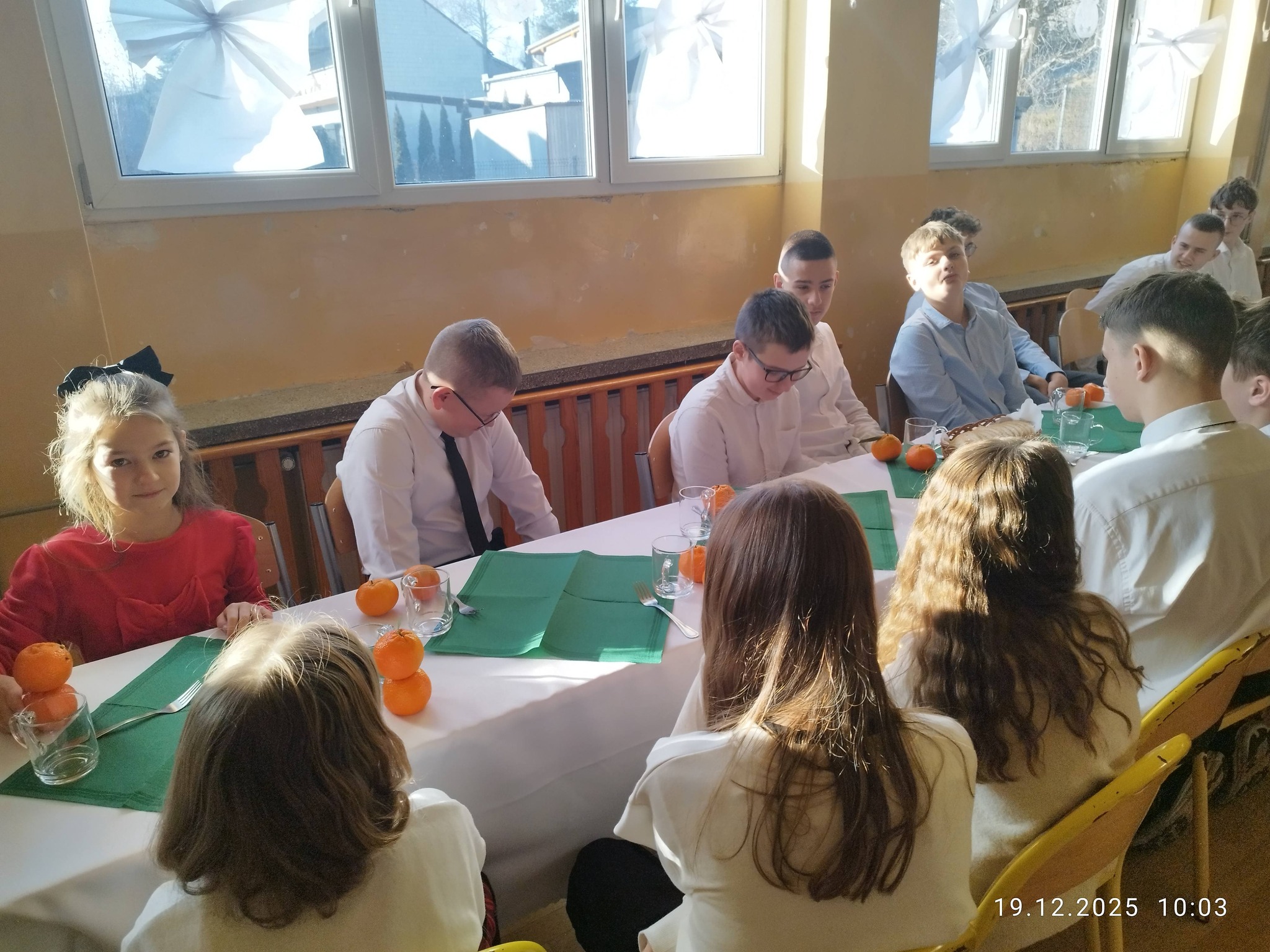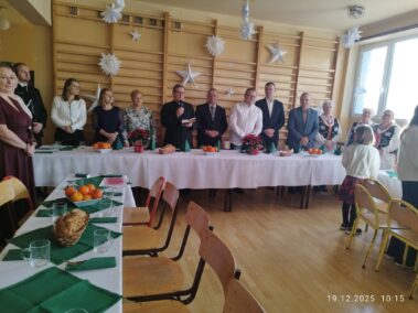 19 grudnia 2025 roku w naszej szkole odbyła się wyjątkowa szkolna wigilia. Był to pełen ciepła i radości czas, który zgromadził całą społeczność szkolną. W uroczystości wzięły udział przedszkolaki, uczniowie, nauczyciele, pracownicy szkoły oraz zaproszeni goście: Proboszcz Jacek Miodek, Radni Pan Jacek Mitka oraz Pan Przemysław Gorajczyk, Sołtys – Pan Józef Woźniak, przedstawiciel OSP Czubrowice – Pan Piotr Hrabia , założyciel zespołu Mazureczek – Pan Mariusz Mazur , przewodnicząca Szkolnej Rady Rodziców – Pani Justyna Sądecka, przedstawicielki KGW Czubrowice oraz Panie emerytki.