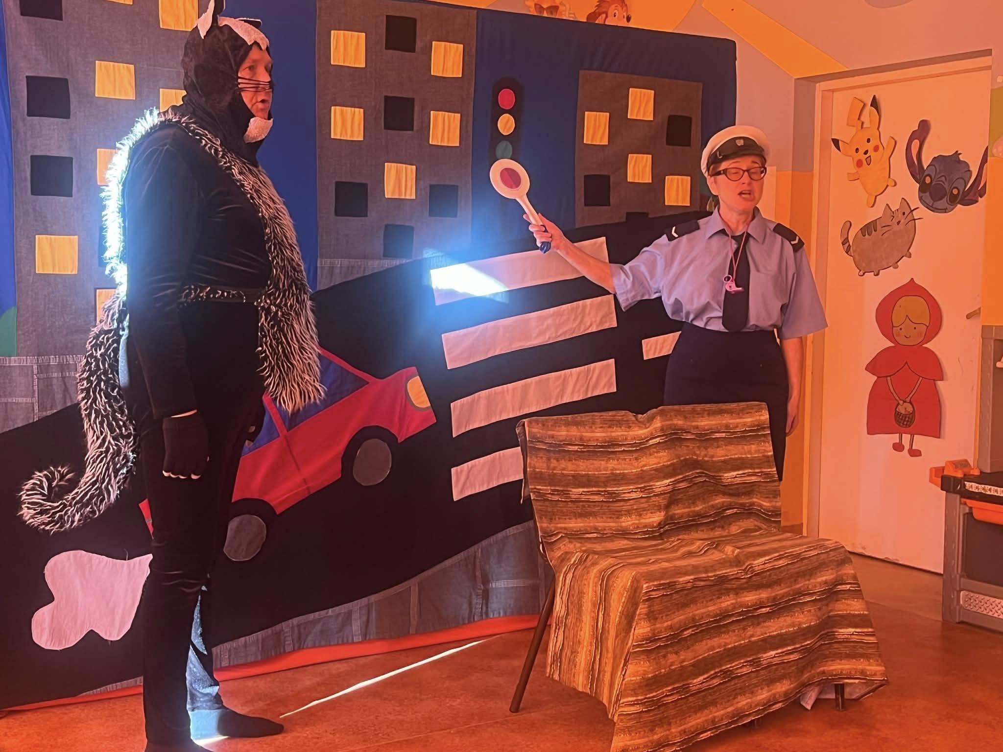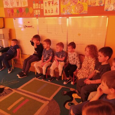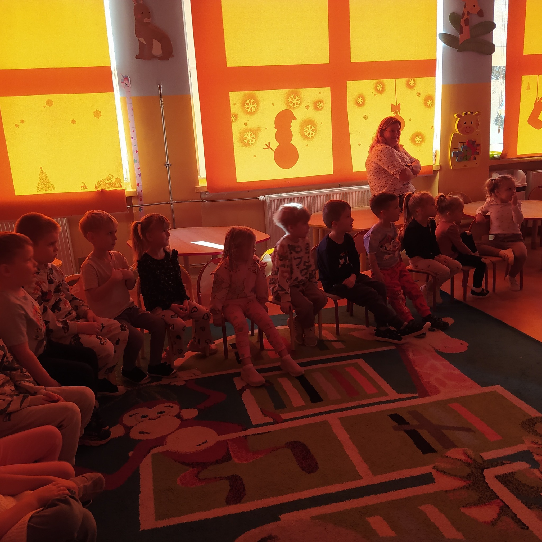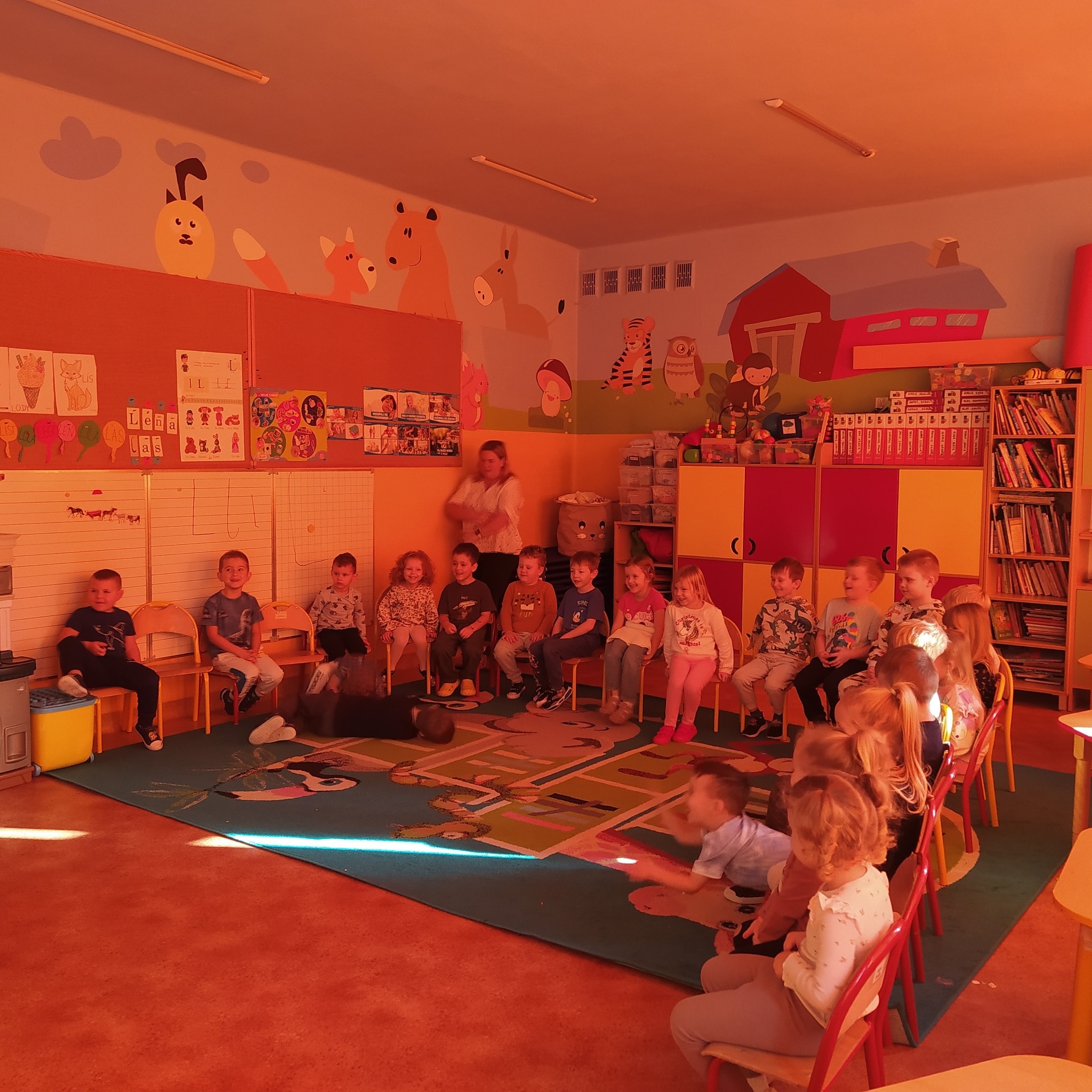 Dnia 18.11.25r.w naszym przedszkolu gościł Teatr Kalejdoskop z wystąpieniem „Kot w wielkim mieście”. Teatrzyk opowiadał o Kotce Łapsotce, która była znudzona życiem na wsi. Marzyła o wielkich podróżach. Postanawia zatem sama, nie bacząc na protesty swego przyjaciela- Zapłota, wybrać się na wycieczkę do miasta. Niestety, okazuje się, że Łapsotka kompletnie nie wie jak zachować się na ulicy, ufa każdemu napotkanemu łobuzowi…