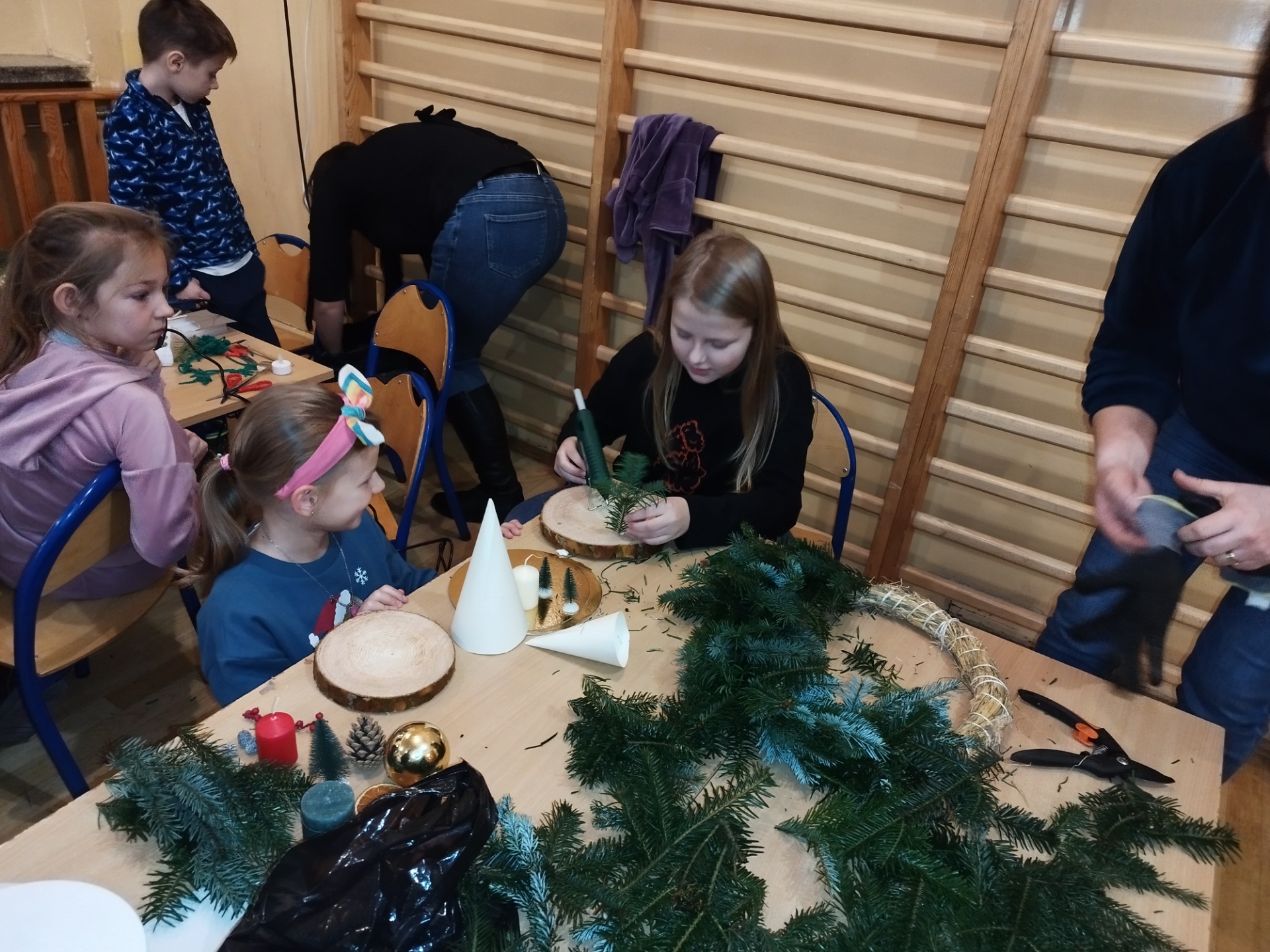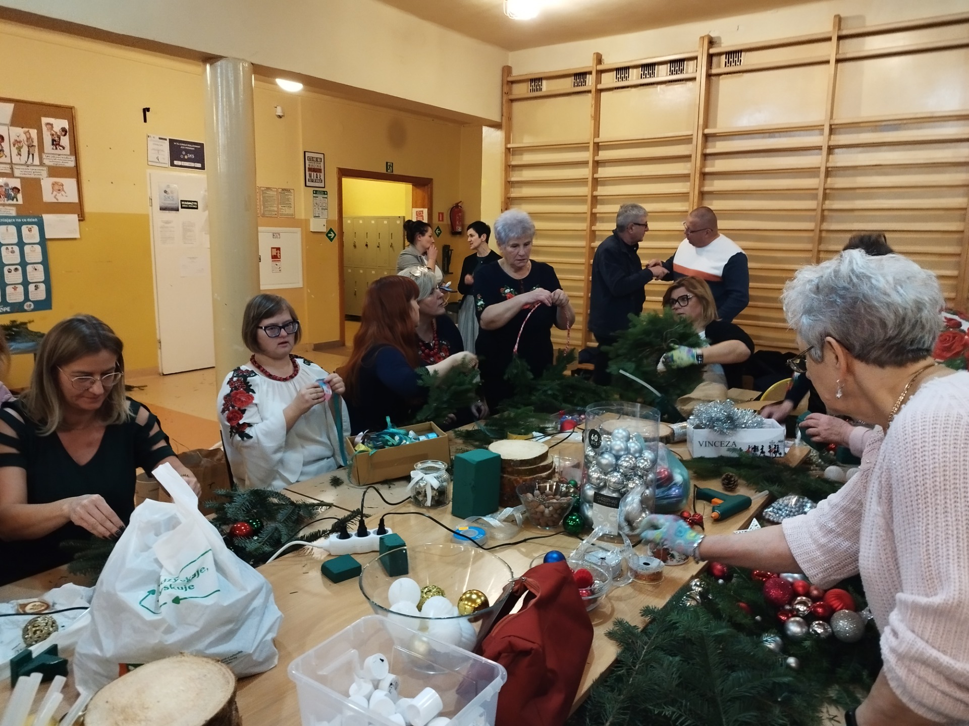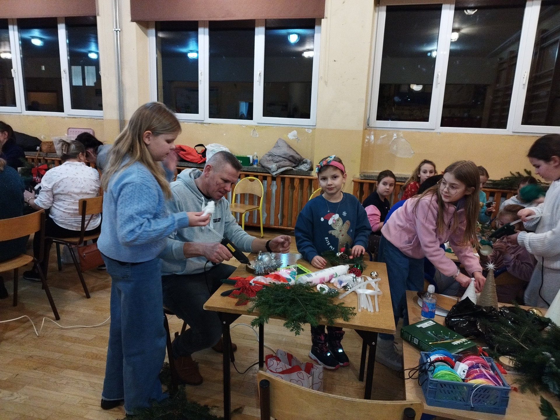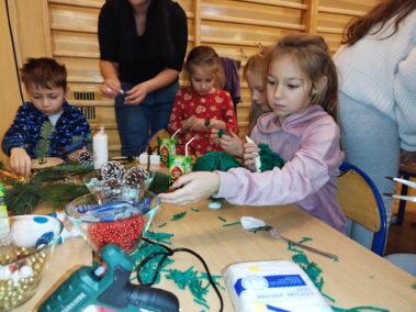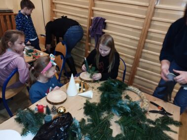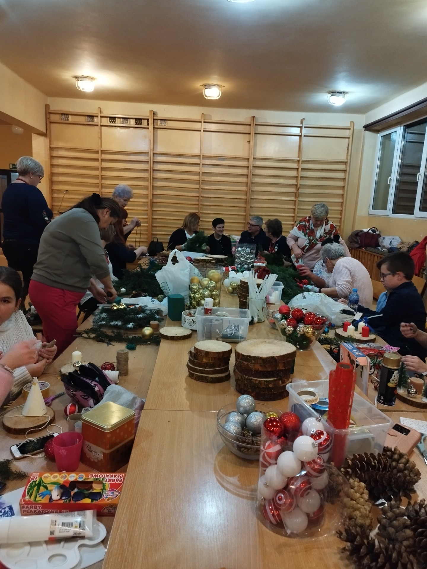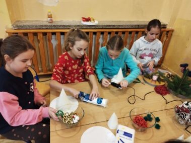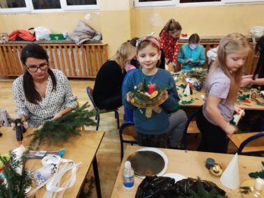 Wchodząc do naszej szkoły popołudniem 12 grudnia 2024 już od progu można było poczuć zapach choinki. To znak, że tradycyjnie jak co roku odbywały się Warsztaty Bożonarodzeniowe. Mieliśmy przyjemność gościć Przyjaciół naszej szkoły, między innymi: Panią Sabinę Babiuch , Pana Tadeusza Nabagło wraz z żoną, Pana Jacek Mitka, Pana Mariusz Mazur oraz nasze niezawodne KGW CZUBROWICE. Serdecznie dziękujemy również za liczne przybycie naszym uczniom, rodzicom, nauczycielom. Warsztaty uważamy za udane, co zaowocowało przepięknymi stroikami i innymi ozdobami świątecznymi, które zostaną wystawione na sprzedaż po niedzielnej mszy świętej o 9:30.