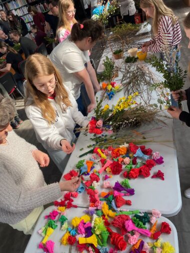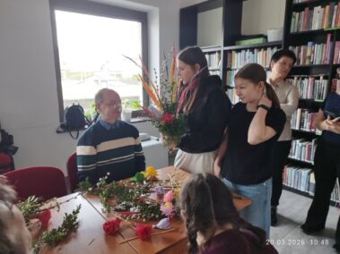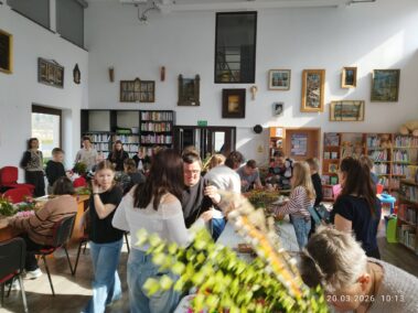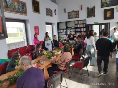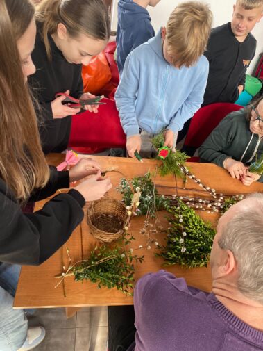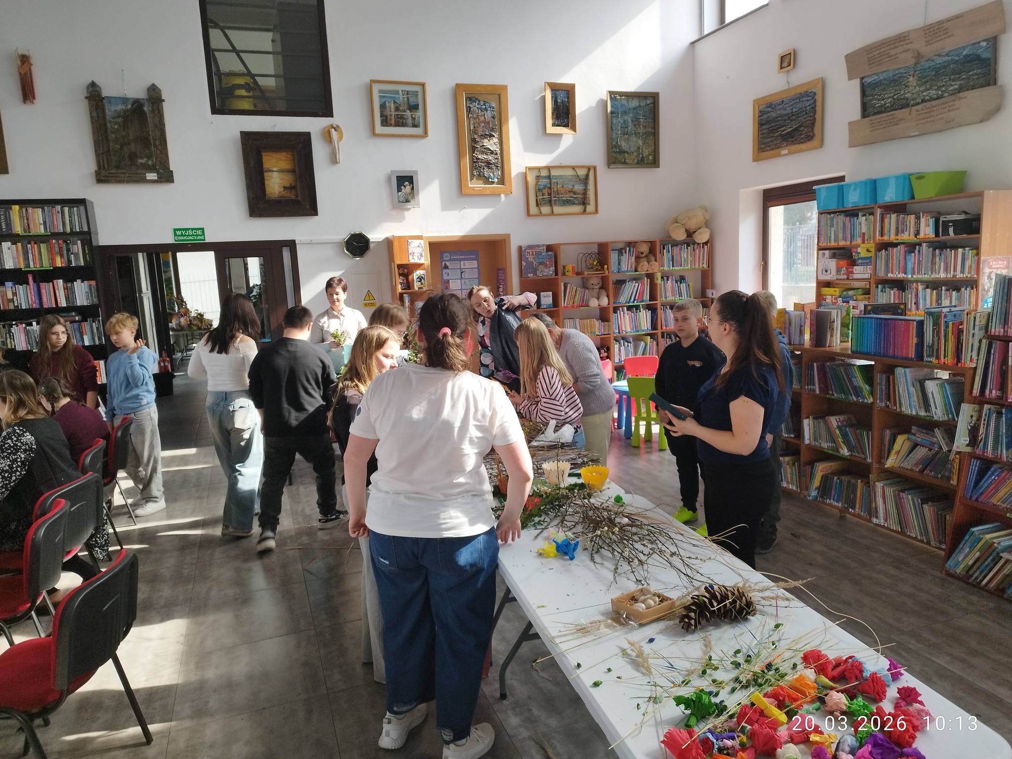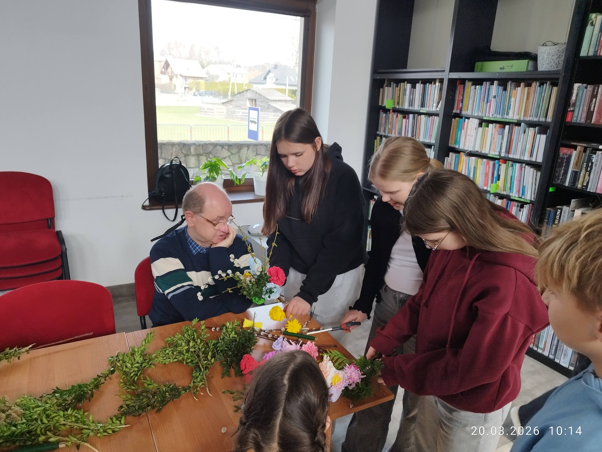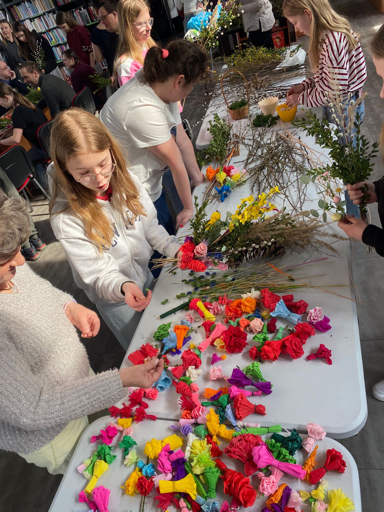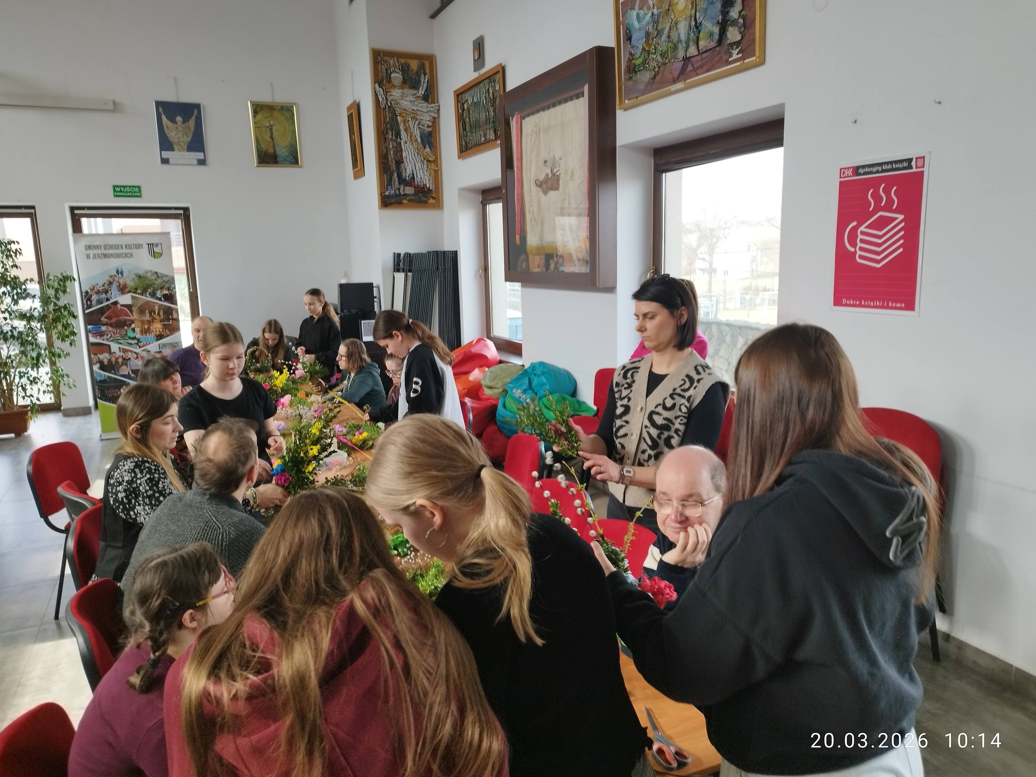 Dnia 20 marca 2026 r. uczniowie szkolnego wolontariatu wraz z opiekunami odwiedzili Gminny Ośrodek Kultury w Jerzmanowicach, gdzie wspólnie z pensjonariuszami Środowiskowego Domu Samopomocy wzięli udział w warsztatach wielkanocnych. W miłej, atmosferze i dzięki pomocy naszych uczniów, z rąk podopiecznych ŚDS wyszły piękne palmy wielkanocne i stroiki, a wspólna praca stała się okazją do rozmów, uśmiechu i integracji międzypokoleniowej. To spotkanie pokazało, jak wiele radości daje dzielenie się czasem i dobrym słowem.
