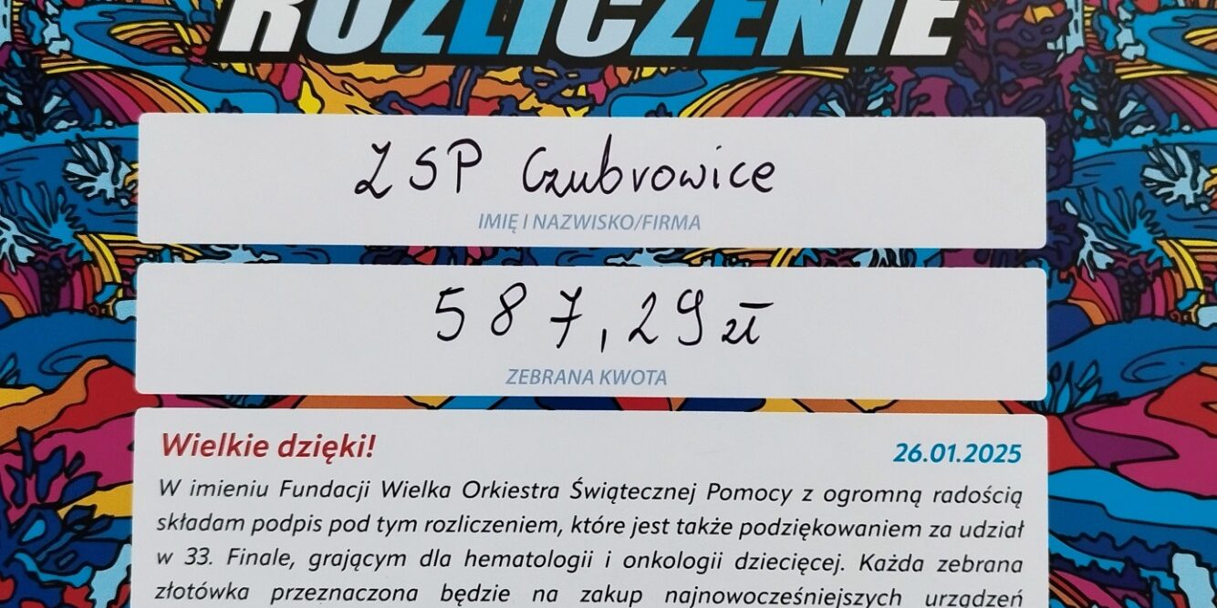 Dziękujemy za wsparcie akcji Wielkiej Orkiestry Świątecznej Pomocy.