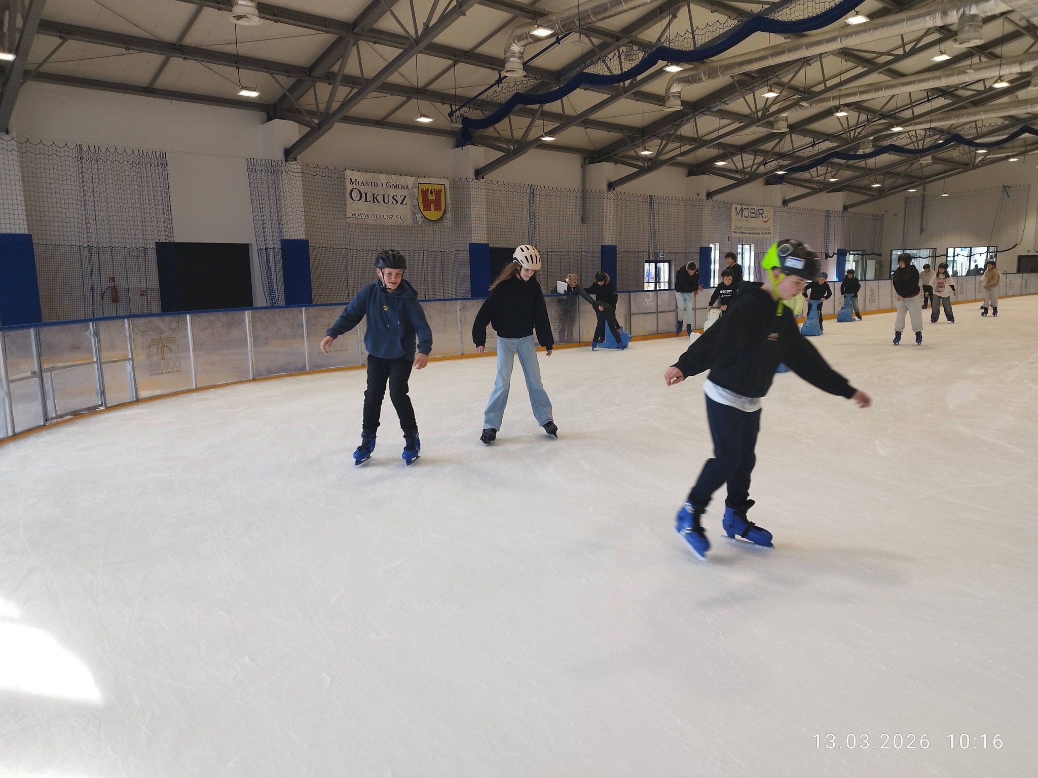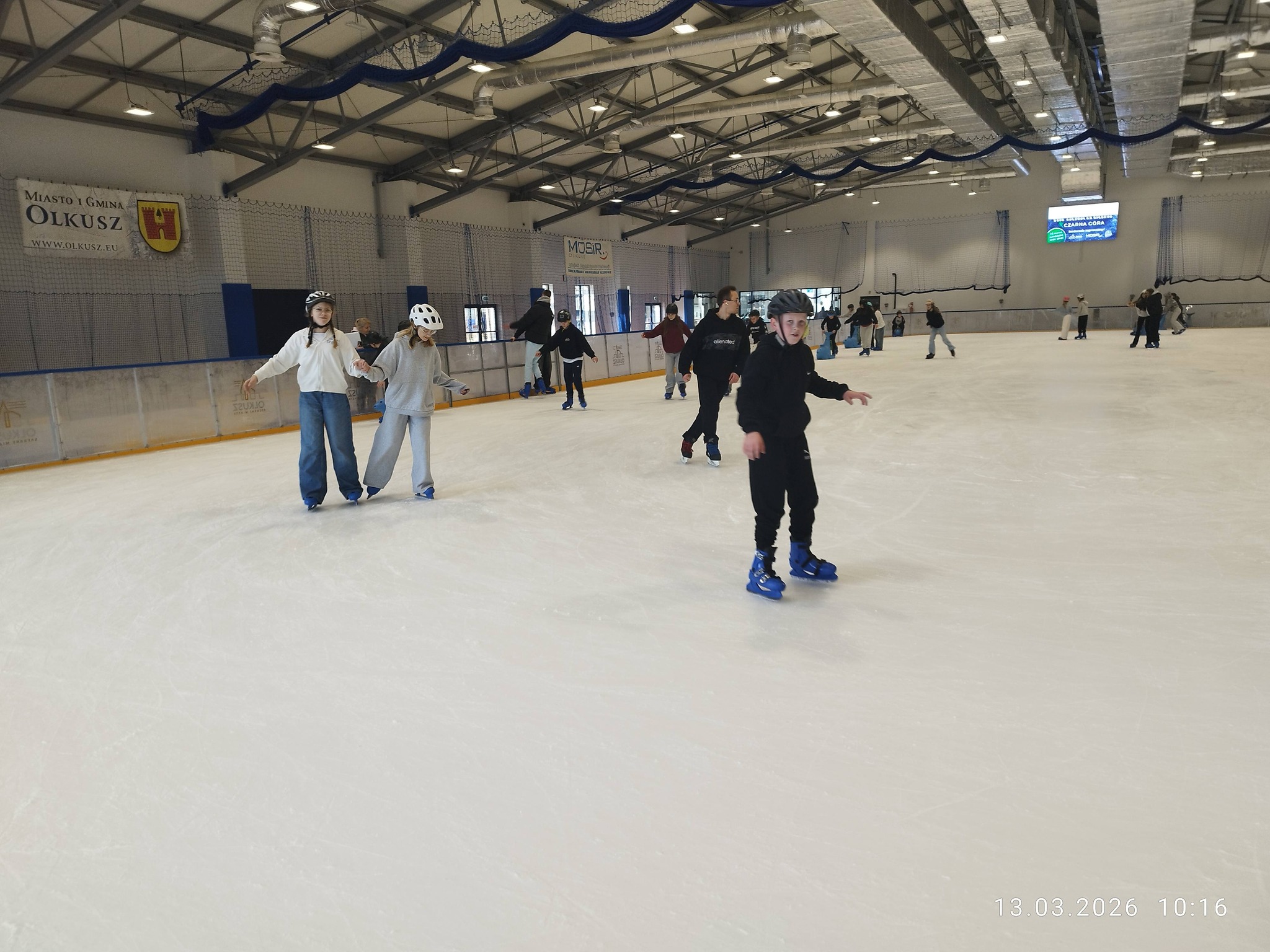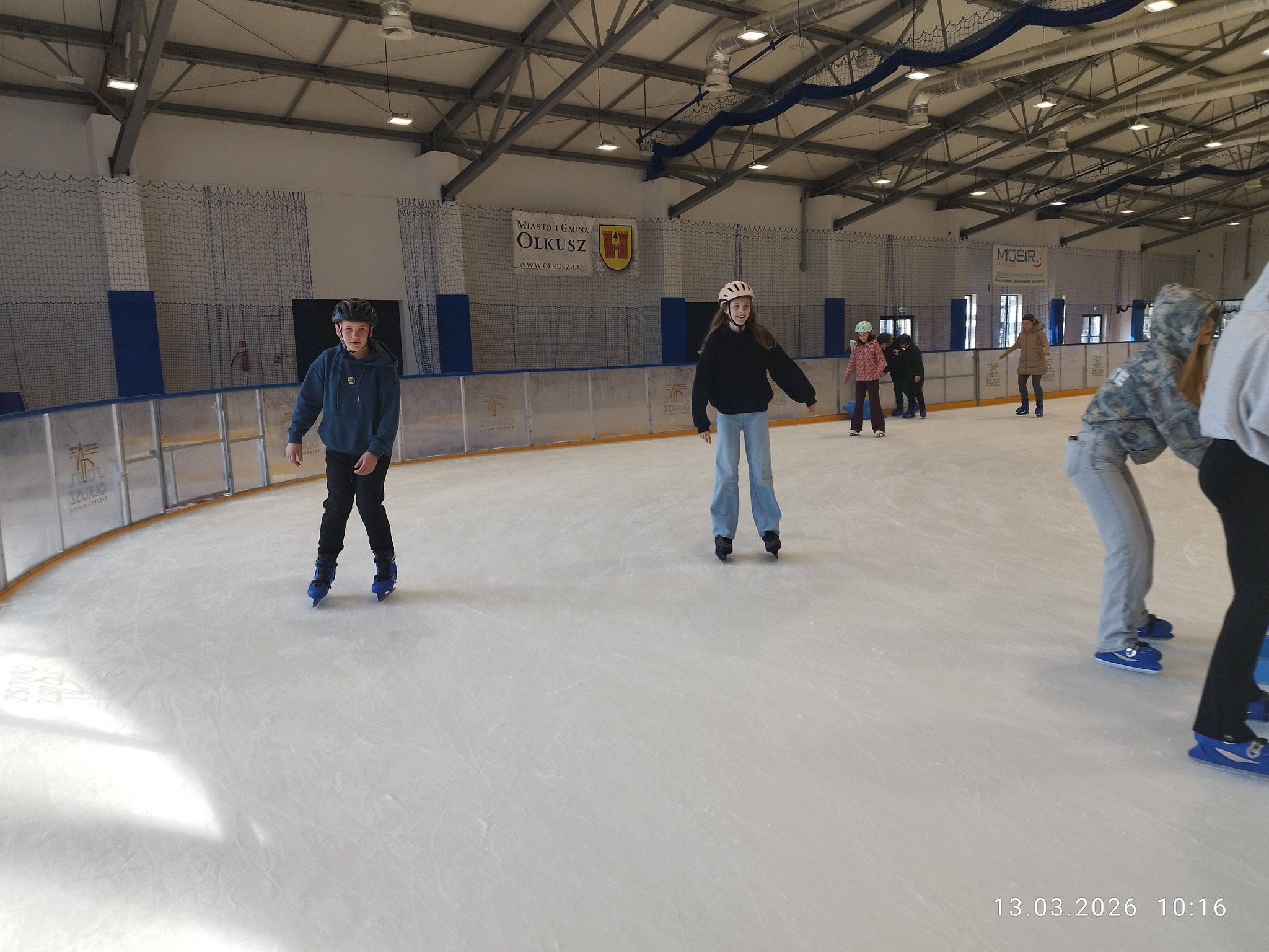 Dnia 13 marca 2026 r. uczniowie klas V–VII wybrali się na wycieczkę na lodowisko do Olkusza. Wspólna jazda na łyżwach była doskonałą okazją do aktywnego spędzenia czasu, integracji oraz dobrej zabawy. Nie zabrakło uśmiechów, śmiechu i sportowych emocji — niektórzy stawiali pierwsze kroki na lodzie, inni doskonalili swoje umiejętności. To był dzień pełen radości i pozytywnej energii, który z pewnością na długo zostanie w pamięci uczestników!